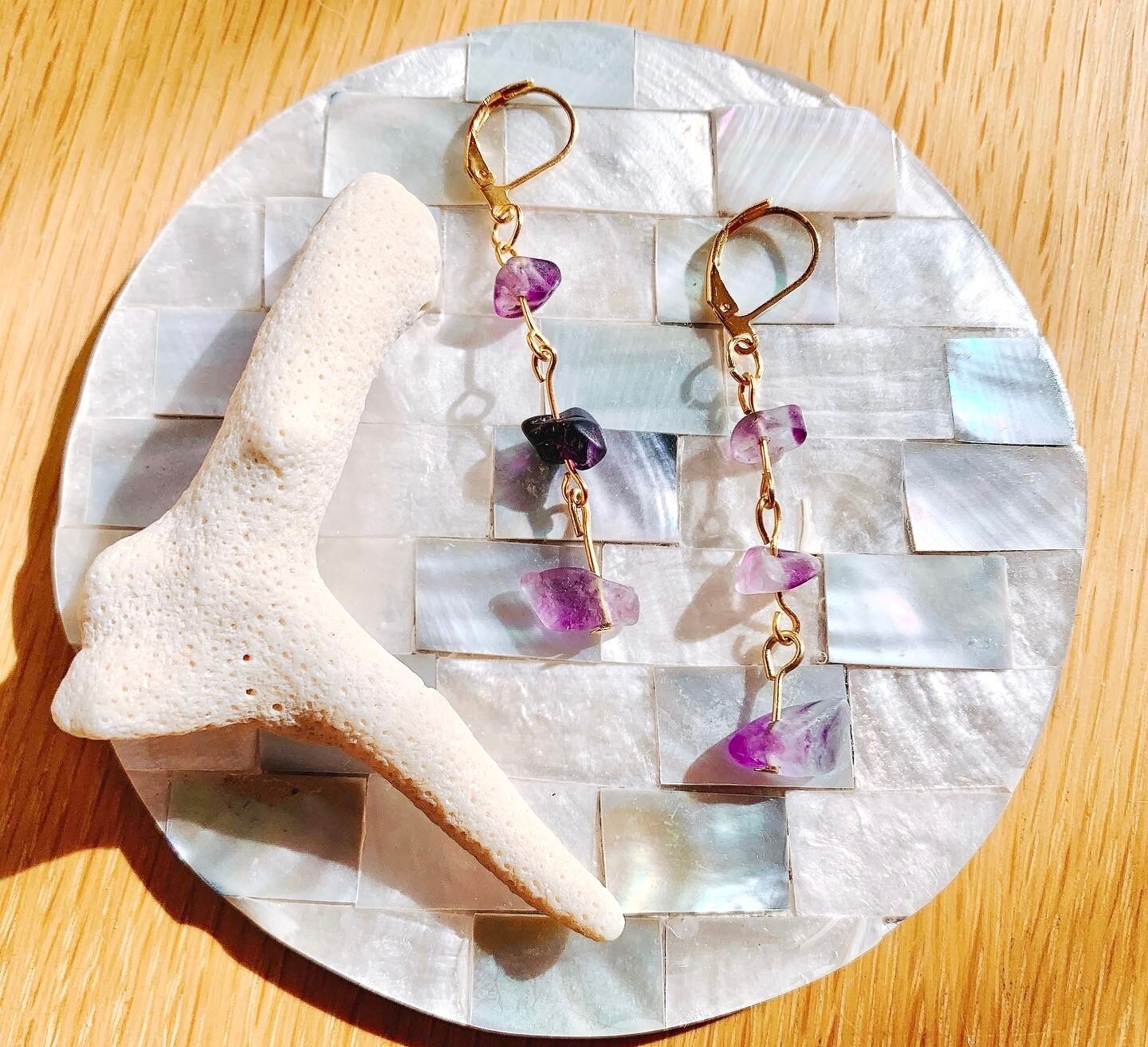 #ハンドメイドアクセサリー #ピアス #手作りアクセサリー #アウトドア #サーフピアス#天然石 #フローライト #さざれ石 #ストーン #ガラス #可愛いものがすき #海 #自然 #詩風堂