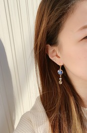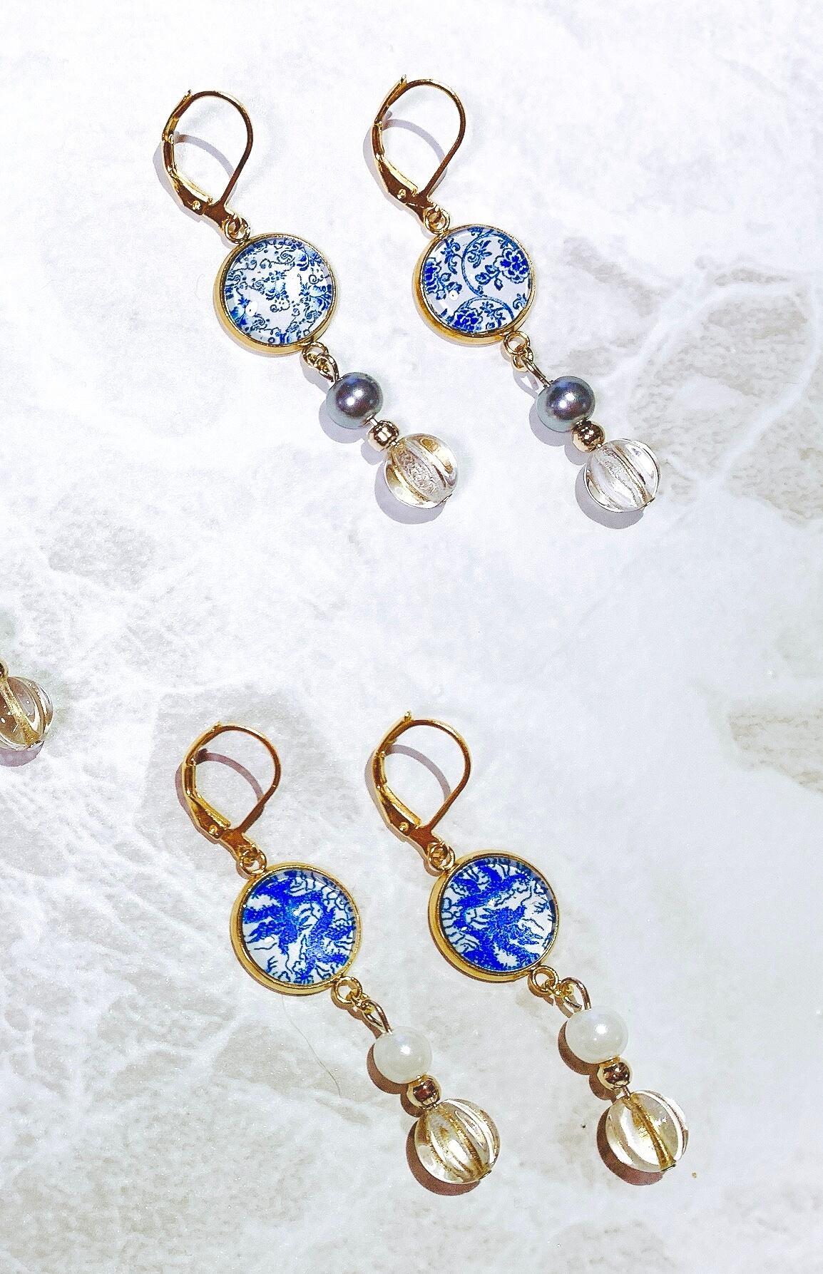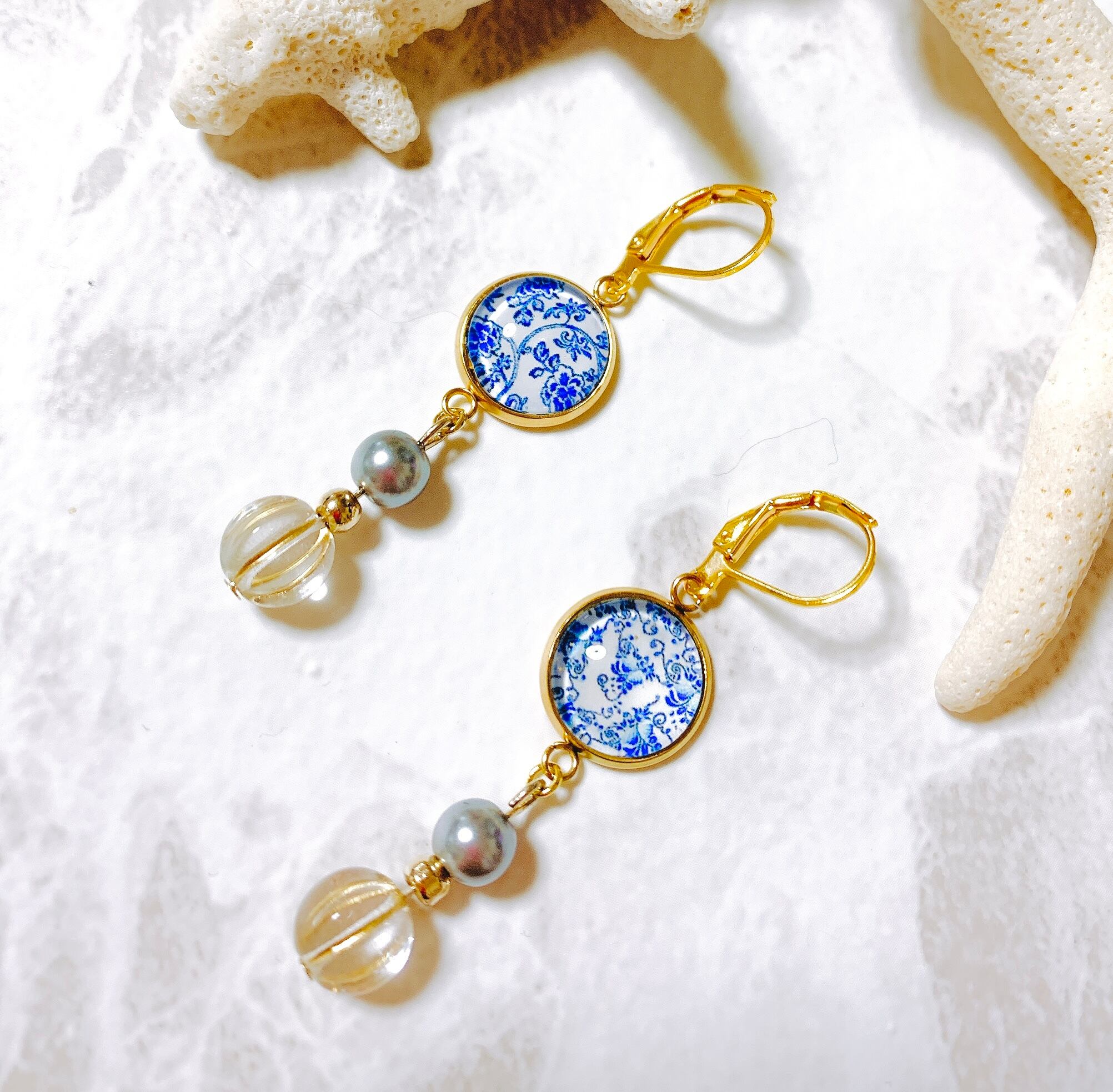 #プチプラ #キラキラ #ゆらゆら #女子会 #綺麗 #彼女 #普段使い #シンプル #ハンドメイドピアス #ハンドメイドアクセサリー #ピアス #手作りアクセサリー #サーフピアス #ガラスカボション #花柄ピアス #青の花柄 #ガラス #可愛い #海 #自然 #詩風堂