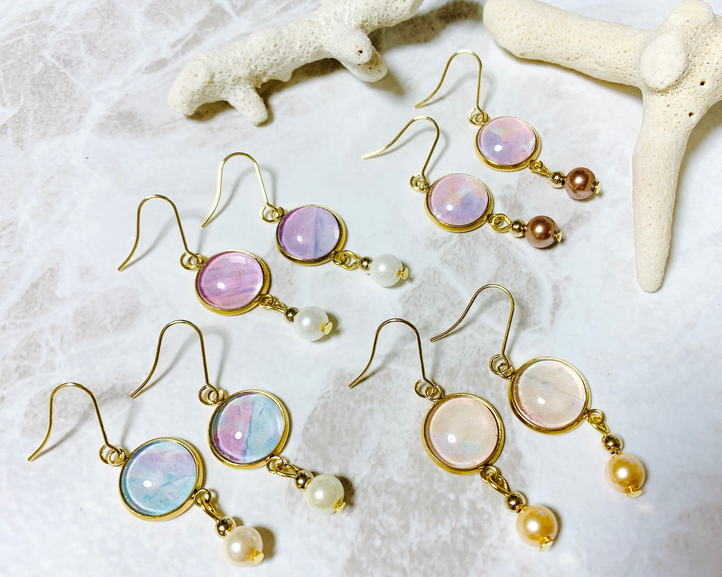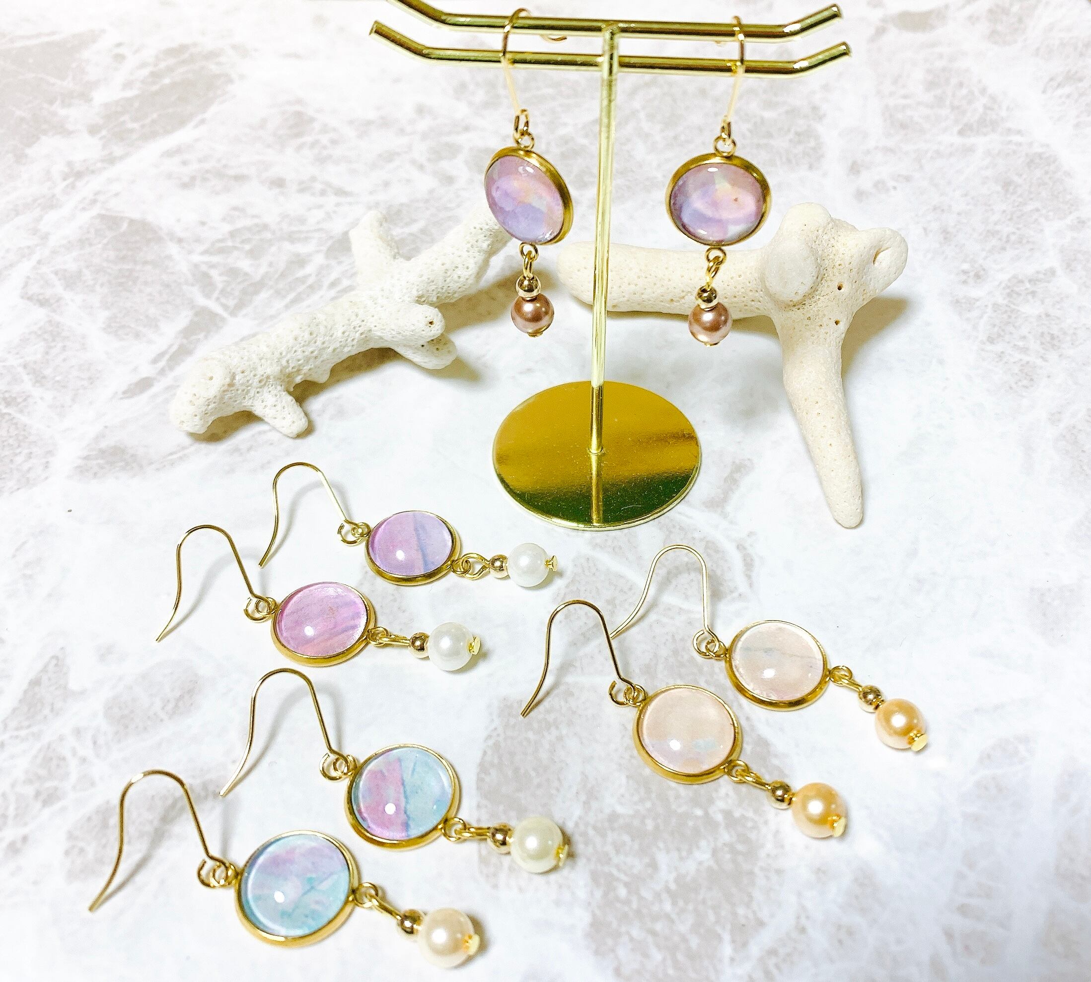 透明感のあるガラスカボションとパールが可愛らしいピアスです♡