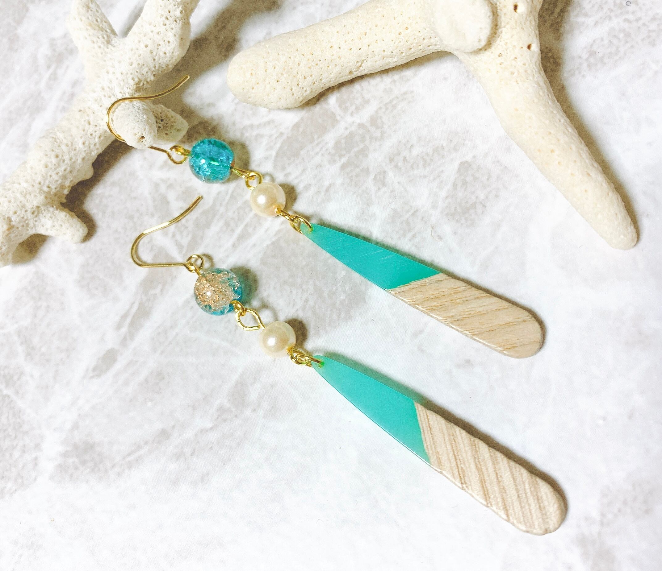 #キラキラ #ゆらゆら #女子会 #綺麗 #普段使い #シンプル #ハンドメイドピアス #ハンドメイドアクセサリー #ピアス #手作りアクセサリー #アウトドア #ウッドピアス #天然石 #ストーン #ガラス #パステルカラー #パステルピアス #木 #木のモチーフ #おしゃれ女子 #可愛い #海 #自然 #詩風堂