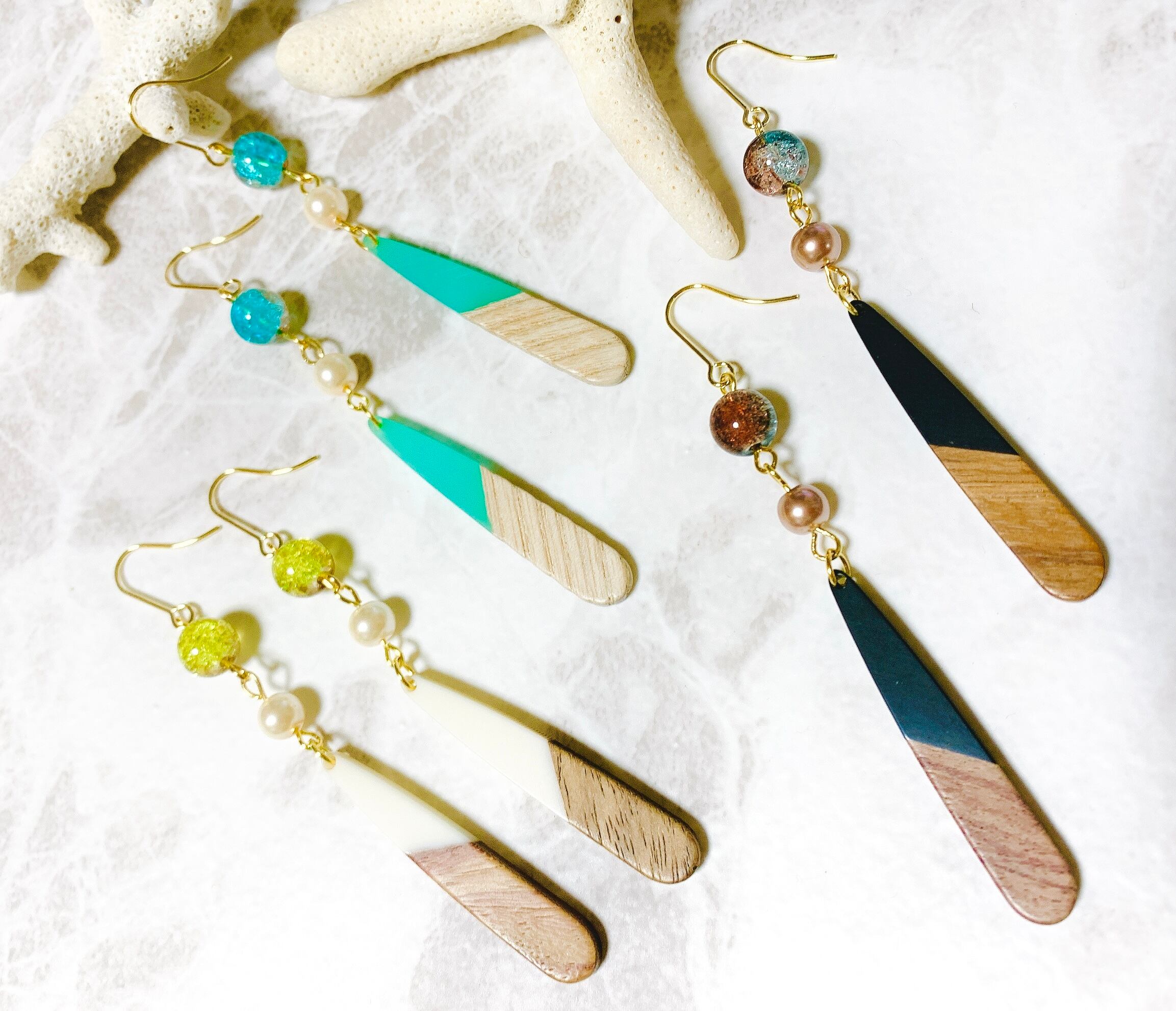 #キラキラ #ゆらゆら #女子会 #綺麗 #普段使い #シンプル #ハンドメイドピアス #ハンドメイドアクセサリー #ピアス #手作りアクセサリー #アウトドア #ウッドピアス #天然石 #ストーン #ガラス #パステルカラー #パステルピアス #木 #木のモチーフ #おしゃれ女子 #可愛い #海 #自然 #詩風堂