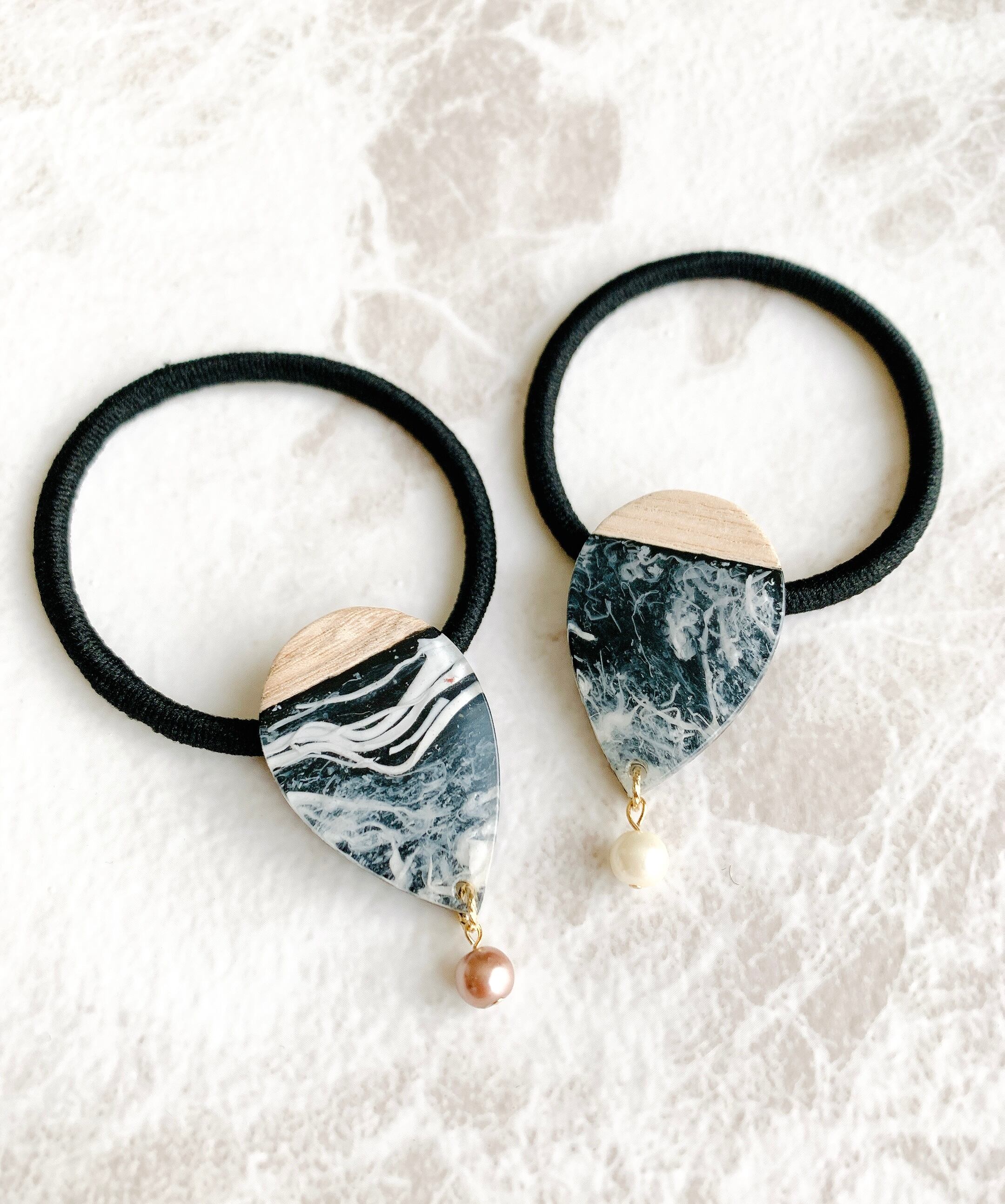 ウッドレジンとパールを組み合わせたヘアゴムです♢