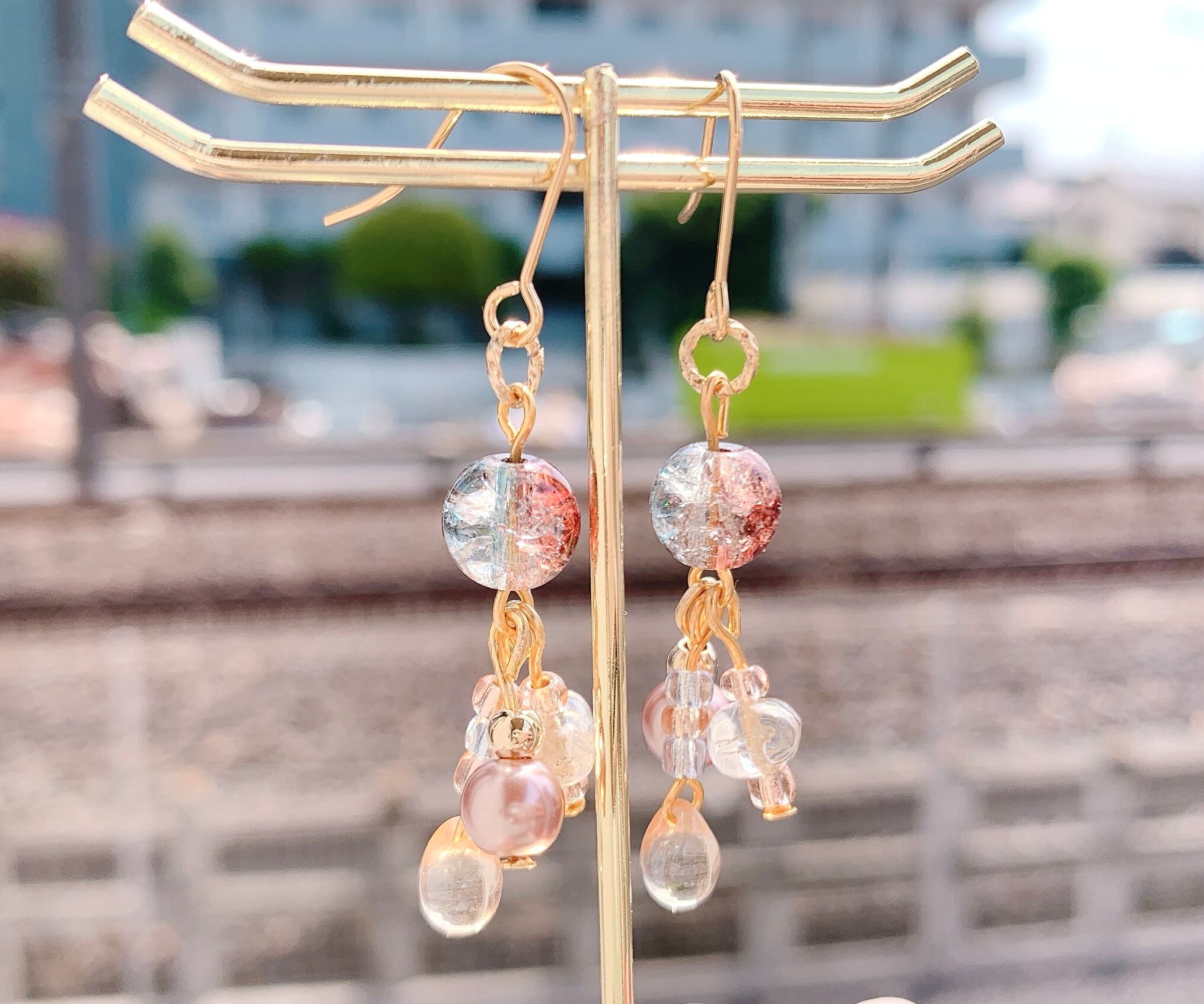 夏が目前になり、これからつけたくなるような透明感のあるピアスを作りました♡